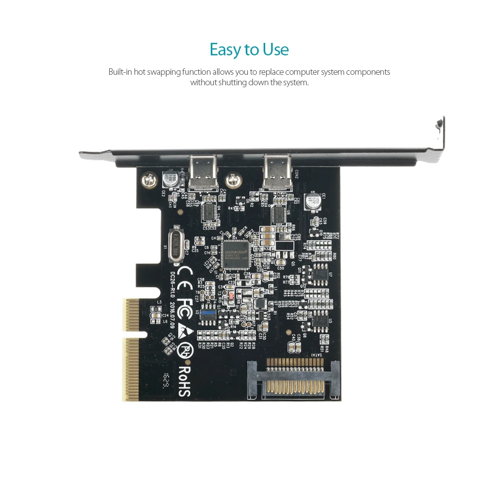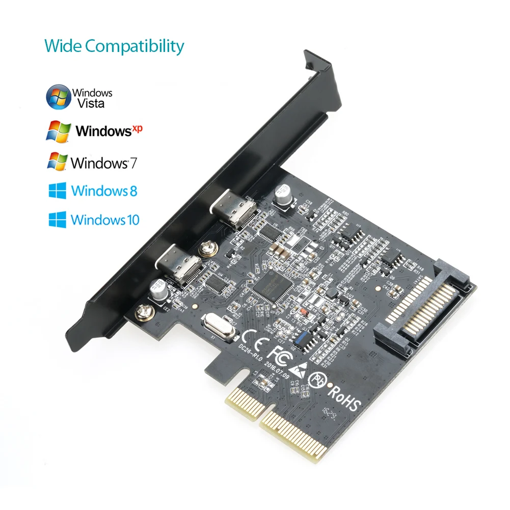 dodocool SuperSpeed USB 3.1 PCI-Express card with Dual Type-C ports offers convenient access to upgrade desktop computers or servers to support Type-C enabled devices via an available x4 or larger PCI-Express slot. With data transfer rates of up to 10Gbps, you can transfer videos, music, photos, and data files between Type-C enabled devices and your computer at blazing fast speeds.