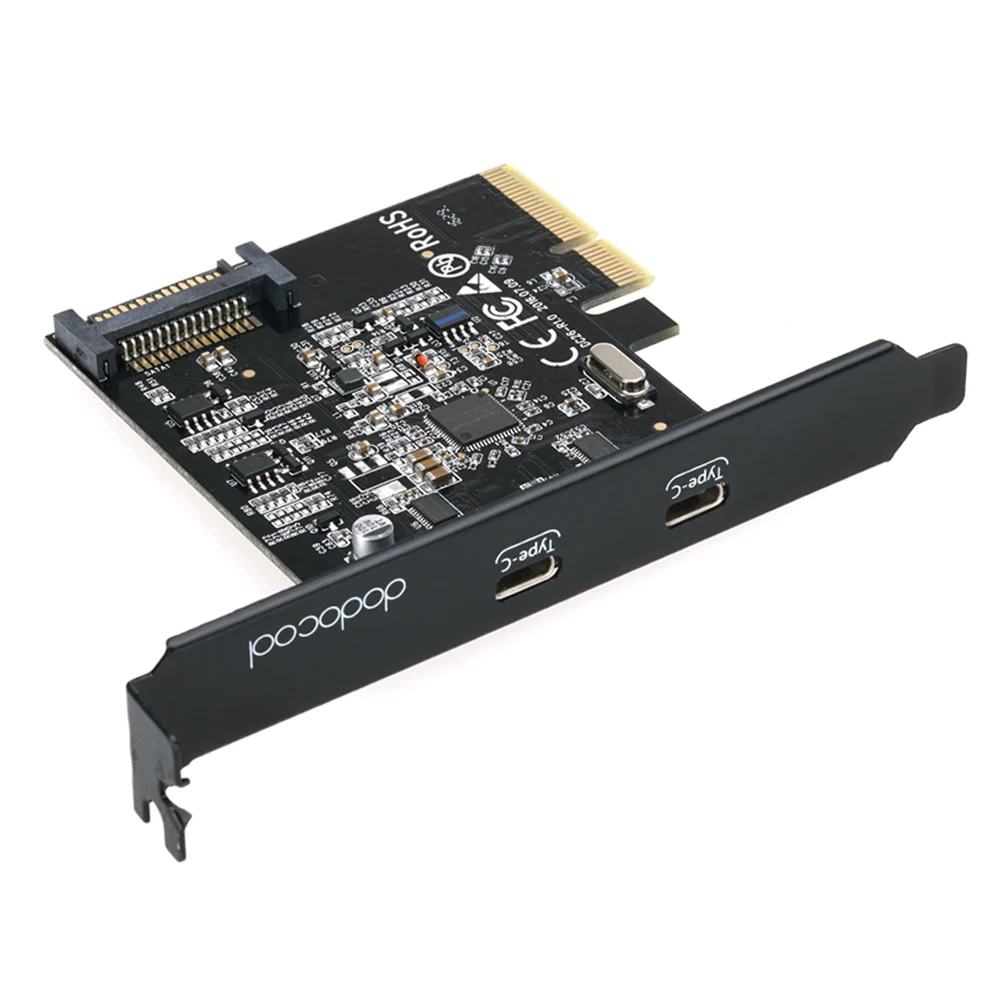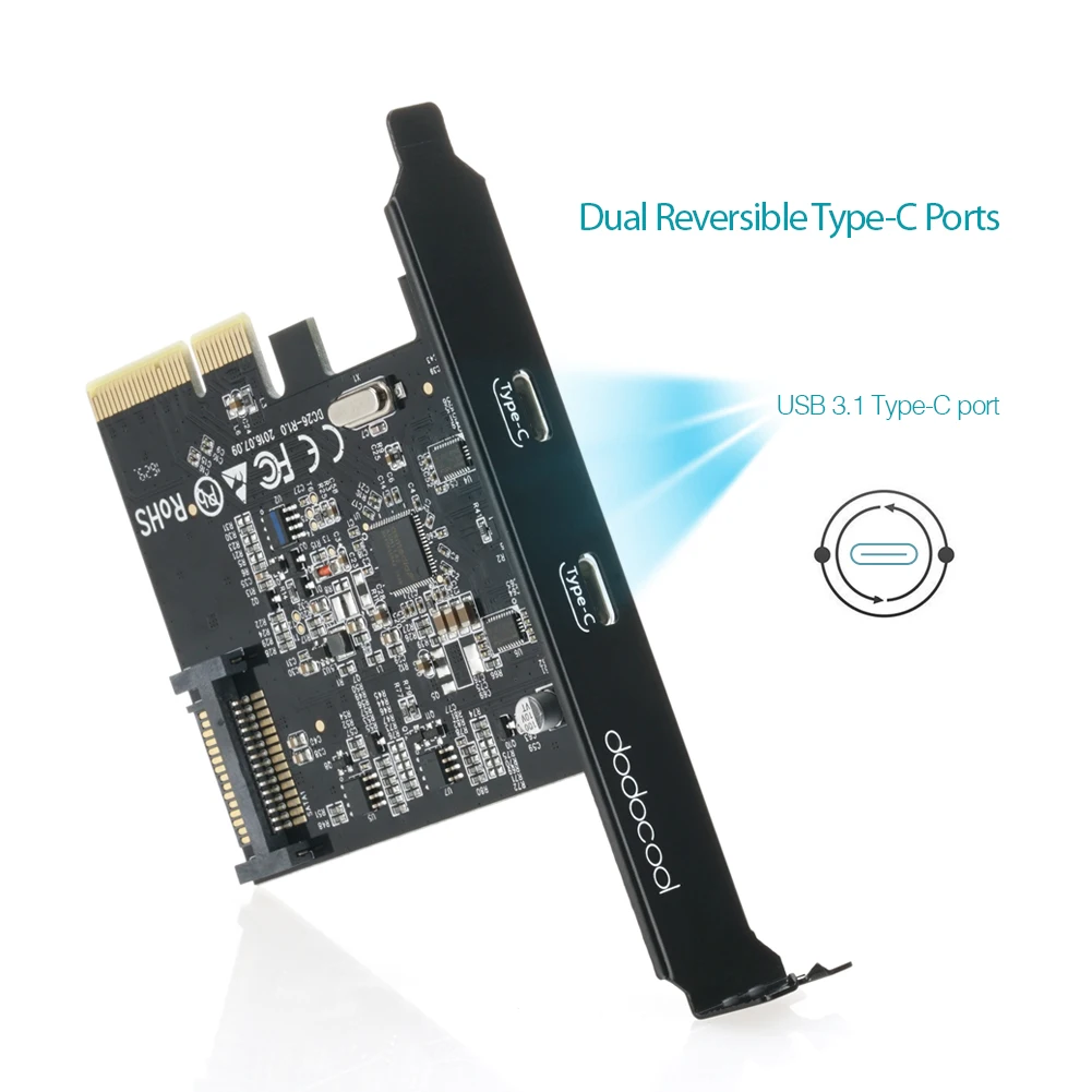 | dodocool SuperSpeed USB 3.1 PCI-Express Card with Dual Reversible Type-C Ports 5V 15-Pin Connector Gen 2 10 Gbps Add on Card |
