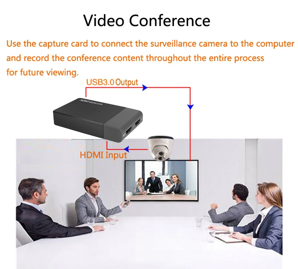 1.Based on the high speed USB 3.0 technology, It can capture one signal channel HD HDMI video signal. Suitable for devices with HDMI output such as blu-ray player, PS3/4, Xbox one ,Wii U,Nintendo Switch etc.DON'T work for HDCP2.2 devices 2.NO driver, and it is truly PnP. Low latency for game, meeting, live streaming. Share to youtube, facebook and twitter.Support Mic-in for commentary; Record HDMI signal source directly, No HDMI splitter needed anymore.Compatible with Windows, Linux, Mac OS X 3.Capture resolutions up to 1080p at 60fps for 1080P video source with hardware accelerated up-scaling/down-scaling. Automatically converts input audio formats to 48 KHz PCM stereo audio 4.Audio & Video Record ability from external devices via HDMI port, easy File Save & Share via Computer, compatible with popular streaming software and services like OBS Studio, VLC etc. 5.It also can be used as a screen sharing device for internet meeting,easily sharing presenting slides,spreadsheets,documents,and video recordings into online meetings.Package: