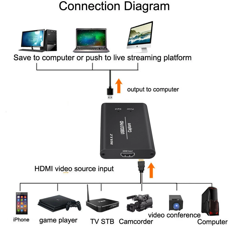 : Recording + PC Live Streaming HDMI Input: USB3.0 Output: 2. Features: