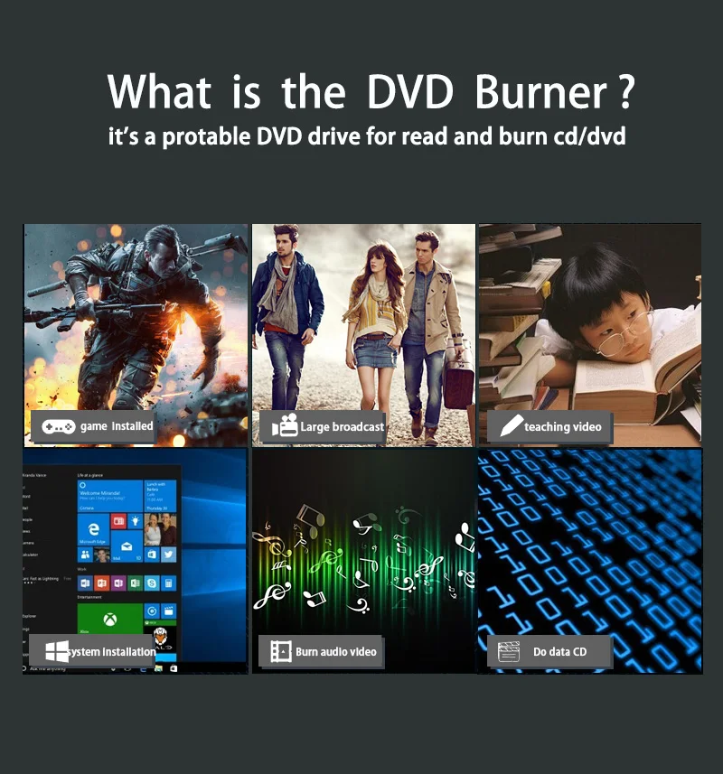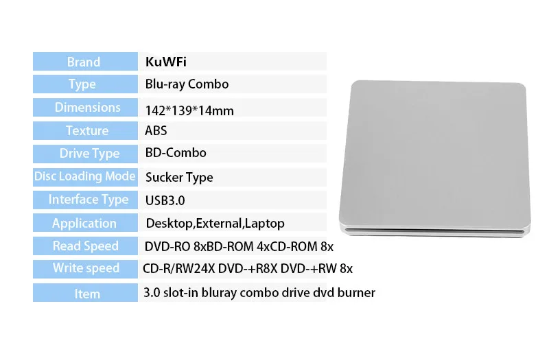 Item : External BD-Rom Blu-Ray Combo Drive/DVD Burner(plug and play, no drive need)