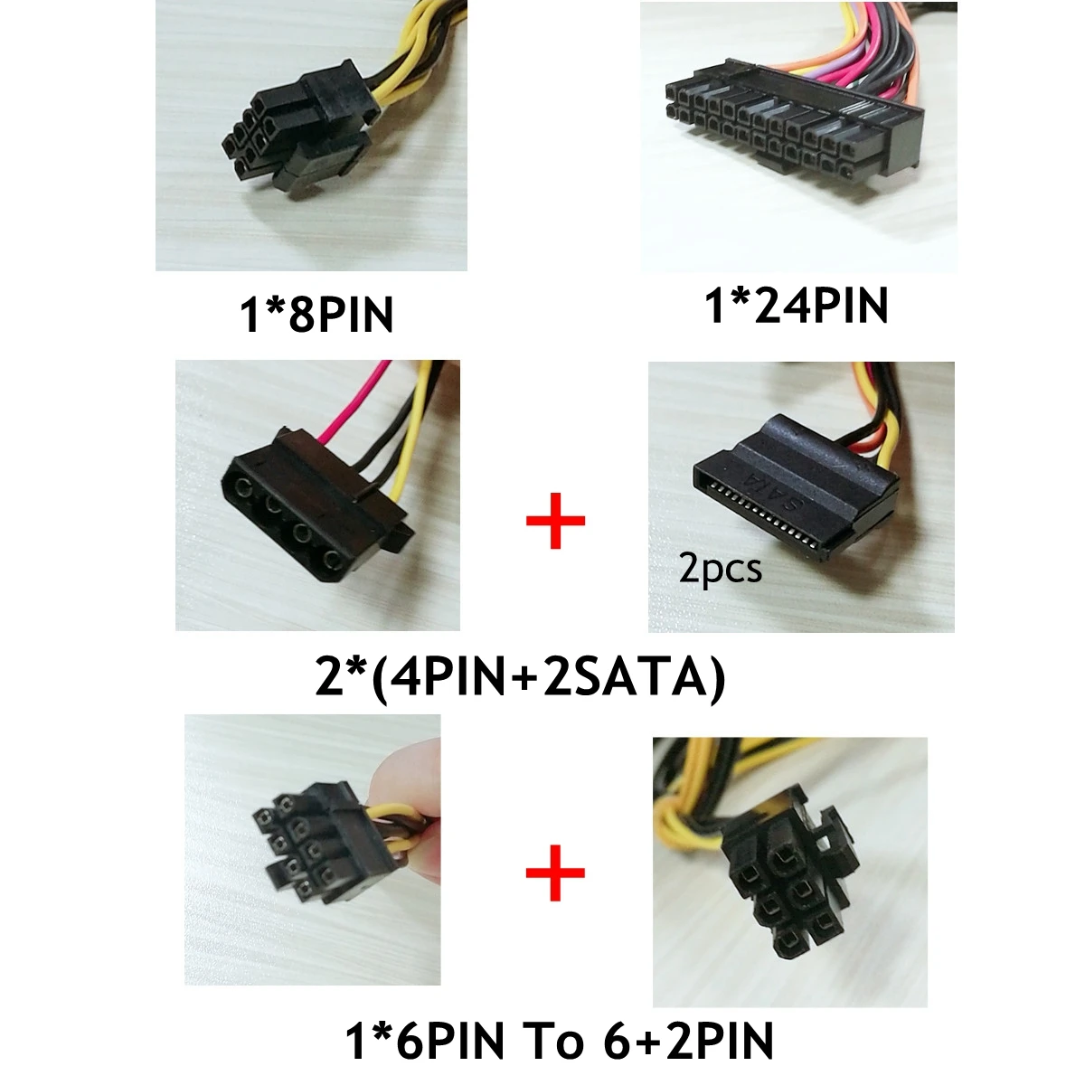 Wire configuration: Main board 24pin / (4 + 4) 8pin / 6P To 6+2P / 4PIN+2SATA / 4PIN+2SATA