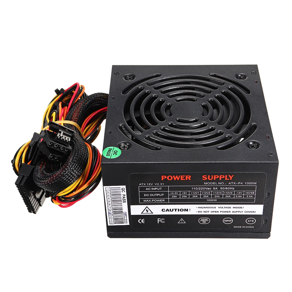 | Black 1000W Power Supply PSU PFC Silent Fan ATX 24pin 12V PC Computer SATA Gaming PC Power Supply For Intel AMD Computer |
