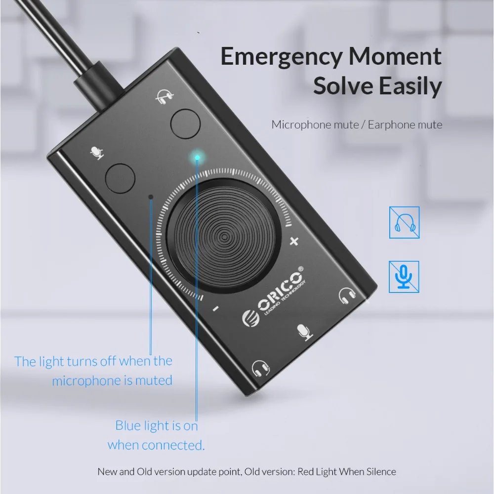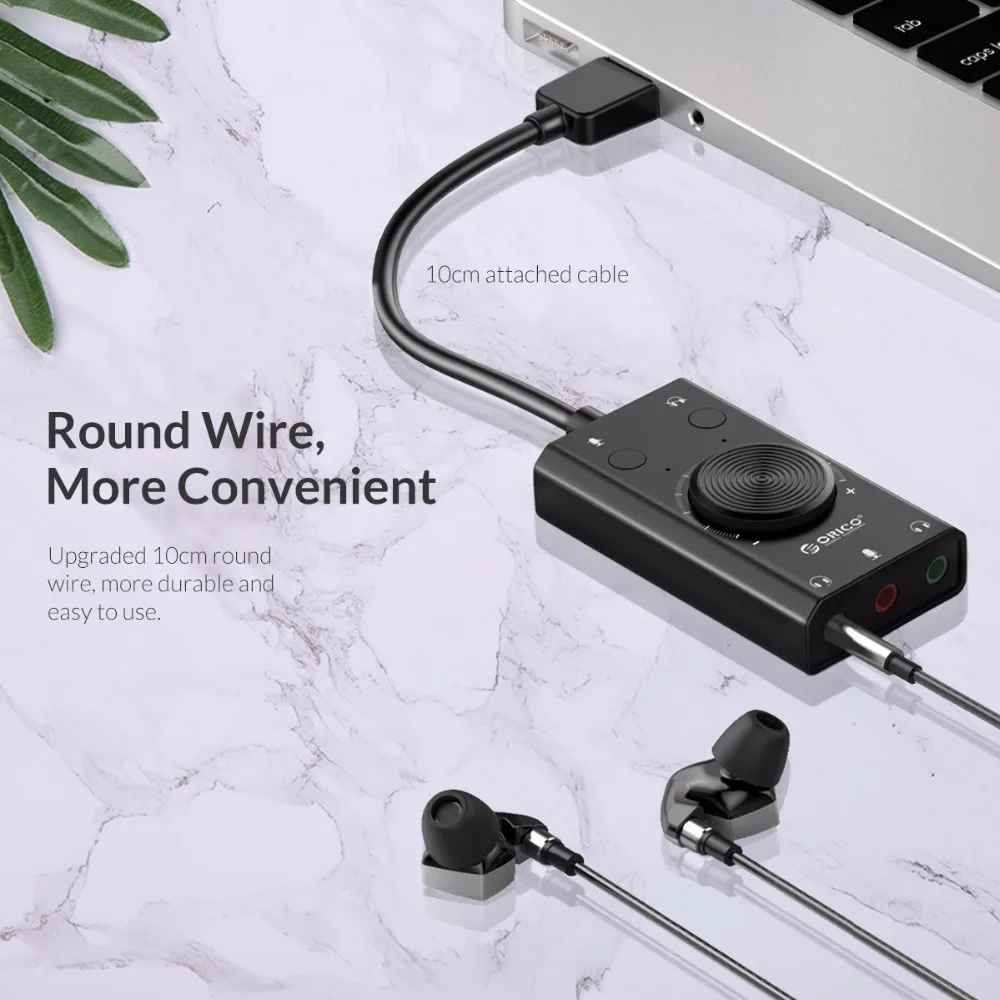 | ORICO Portable USB External Sound Card Microphone Earphone Two in One With 3 Port Output Volume Adjustable For Windows Mac Linux |