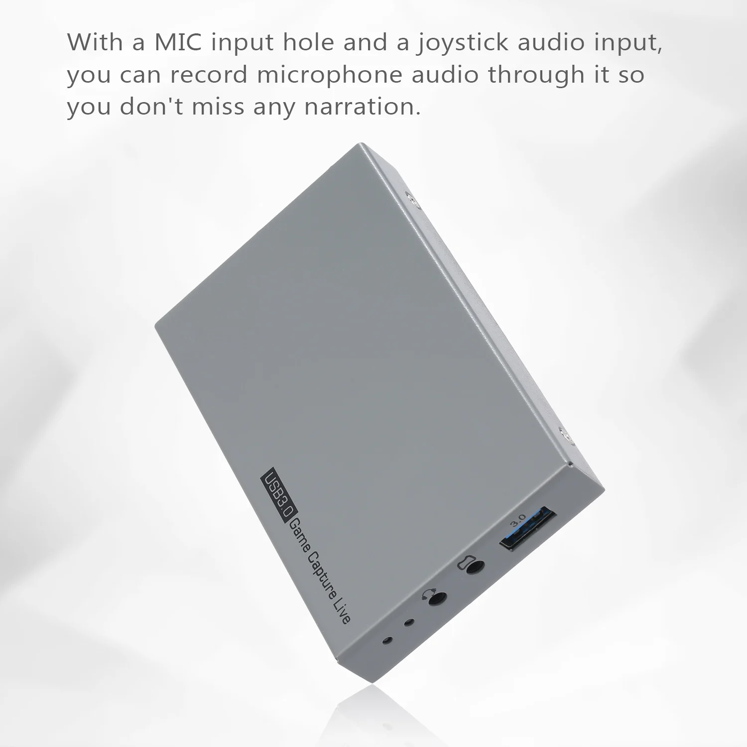 With a MIC input hole and a joystick audio input, you can record microphone audio through it so you don't miss any narration.
