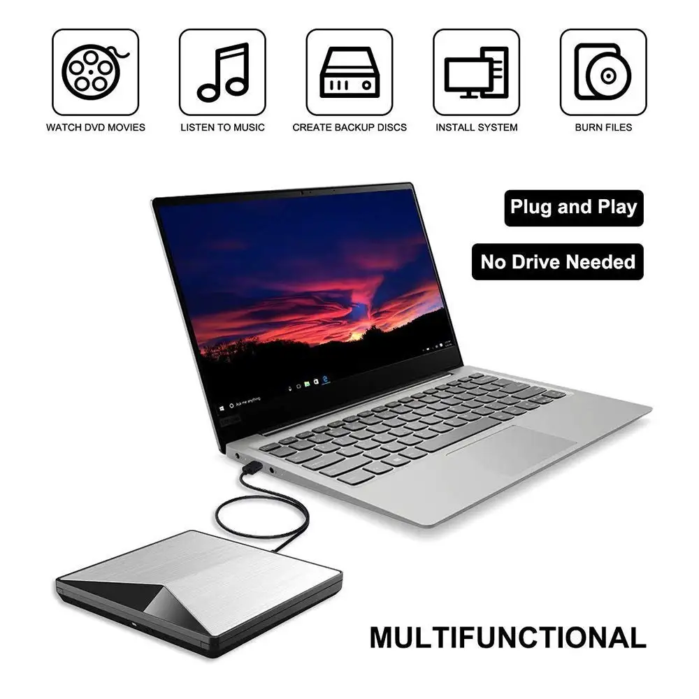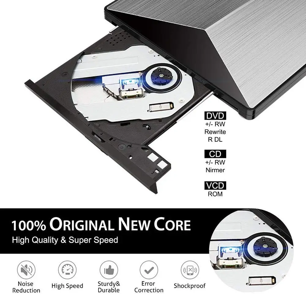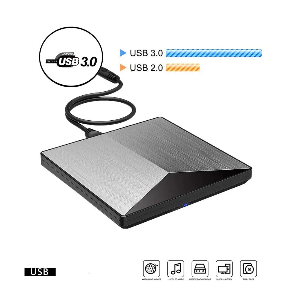 | External CD DVD Drive Burner Player USB3.0 Reader Optical Drive For Mac OS Laptop Air iMac Desktop PC Support Windows10/8/7/XP |