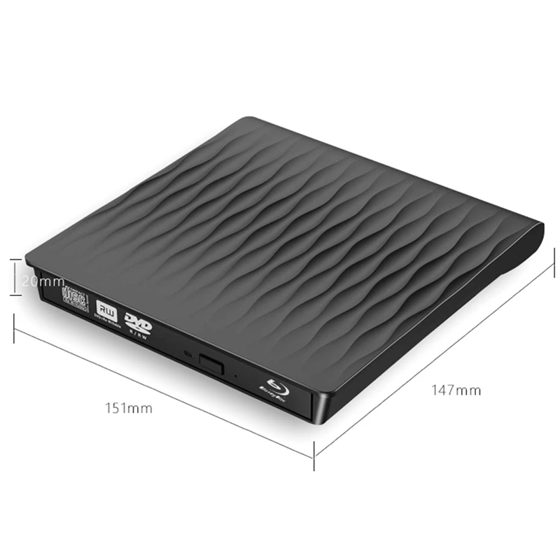 Bluray USB 2.0 External DVD Drive Blu-ray Combo BD-ROM 3D Player DVD RW Burner Writer for Laptop Computer Mac PC HP ACER Lenovo