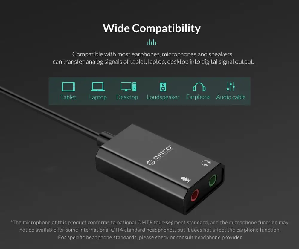 | ORICO USB External Sound Card With Microphone Interface Jack 3.5mm Audio Interface Adapter Free Drive For Windows Mac Headset |