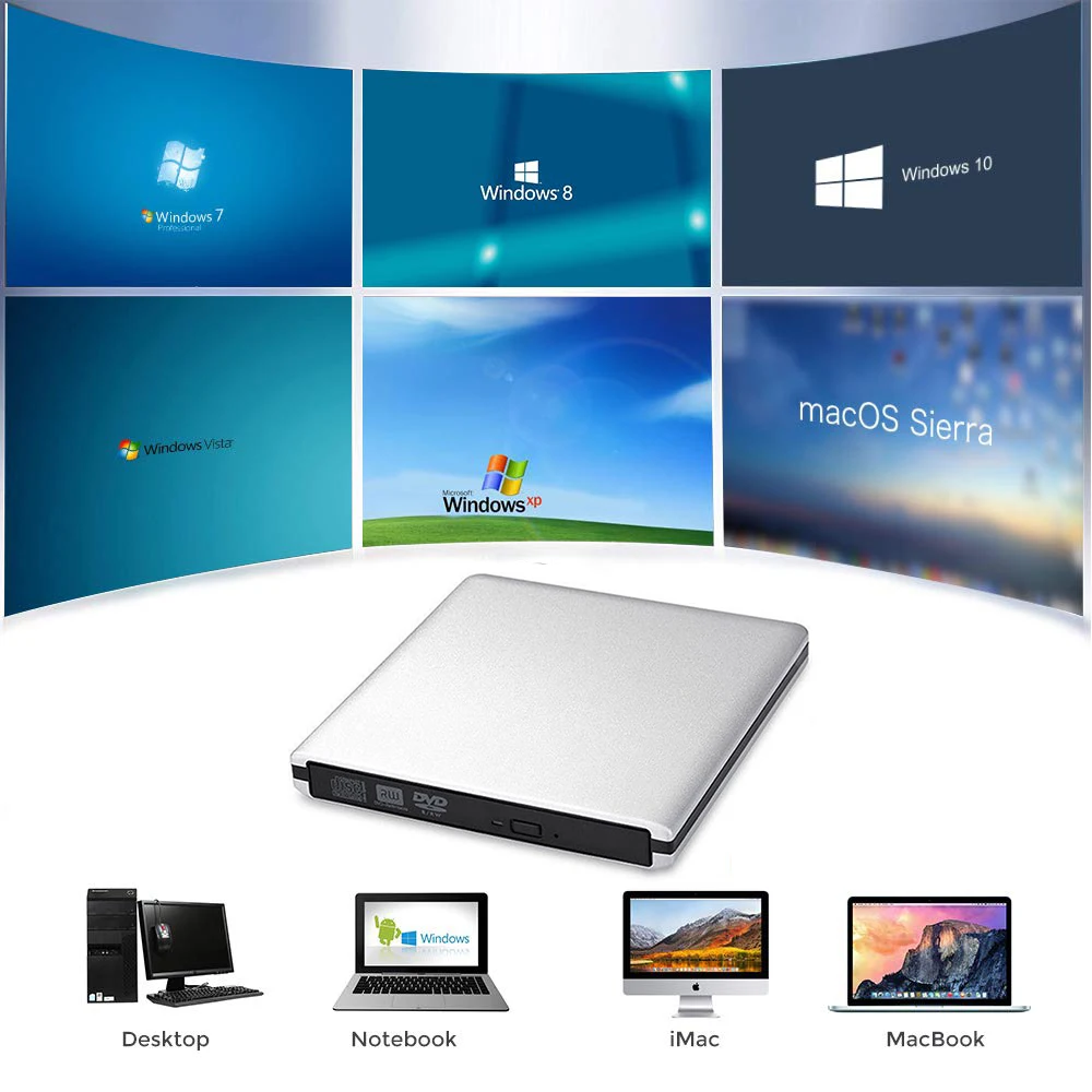 | USB 3.0 External DVD Drive DVD RW Burner Writer CD-ROM Player For Apple Macbook iMAC Laptop Computer PC Windows 10/8/7 |