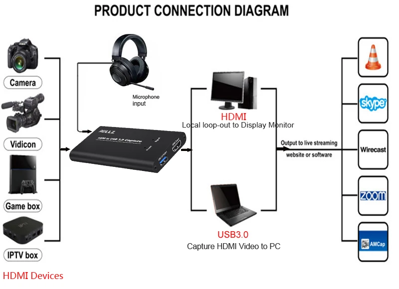 This Rullz 5 port HDMI to USB3.0 Video Capture Dongle,it is easy to carry,have a superior performance,
