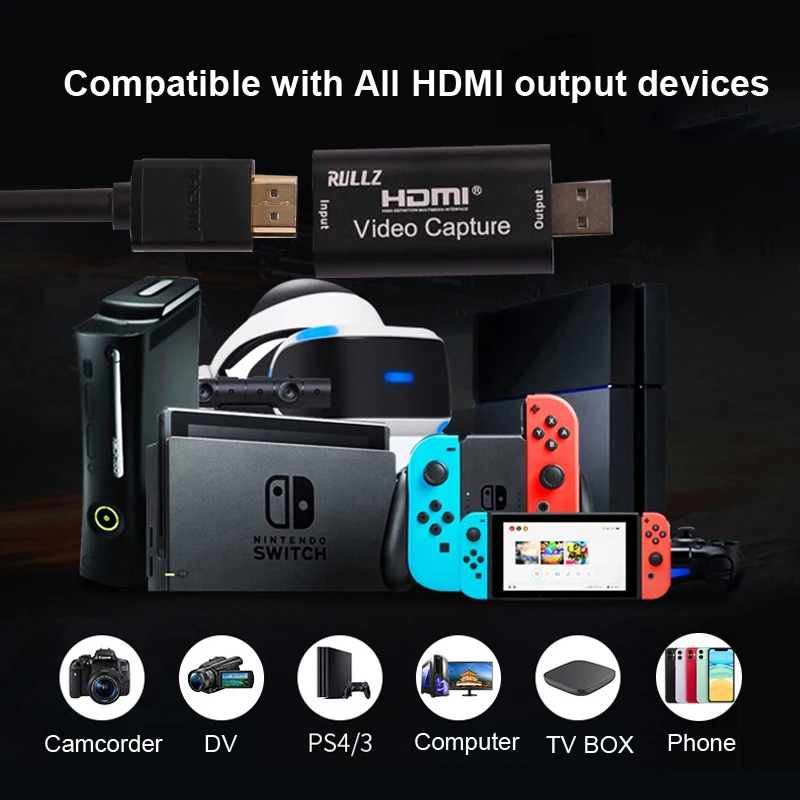 | 4K USB 2.0 Video Capture Card HDMI Video Grabber Live Streaming Box Audio Video Recording for PS4 XBOX Phone Game DVD HD Camera |