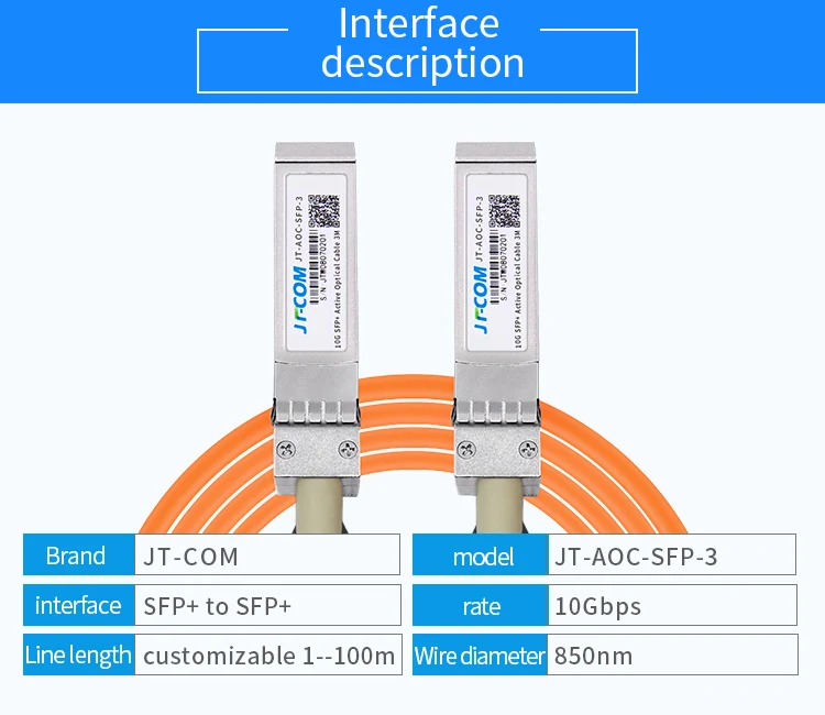 Because some brands of switches only recognize their own code, please leave us a message about your switch brand, so that we can write the corresponding code to the sfp module Free shipping 10G SFP+ to SFP+ AOC Cable 15m 20m 25m 30m 50m 100m SFP Module OM2 Active Optical Cable Support custom length Overview