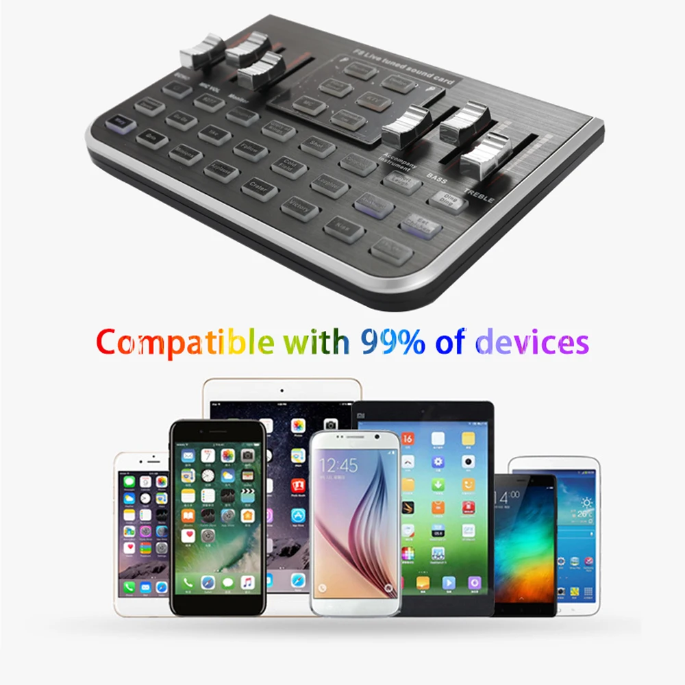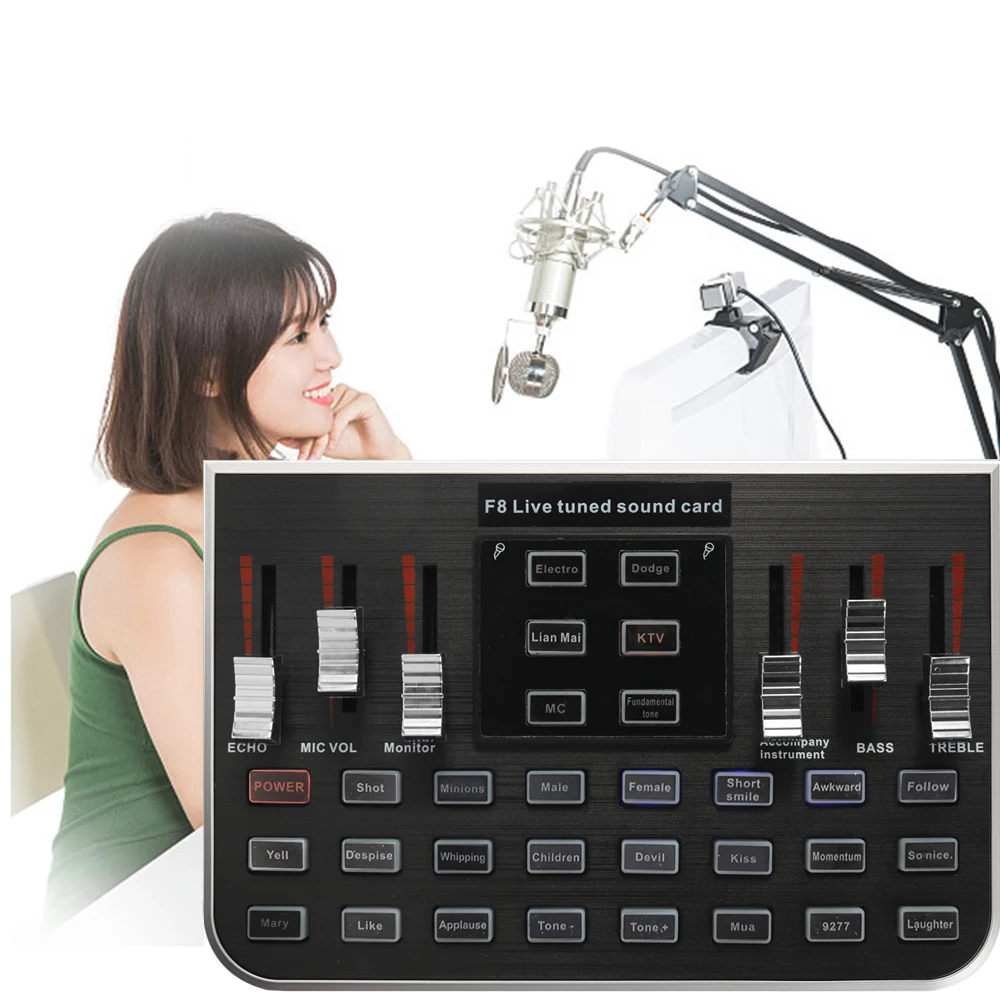 | Mini Microphone Studio Audio Mixer Excellent Quality Music Professional Audio USB Headset Webcast Karaoke Live Sound Card F8 |