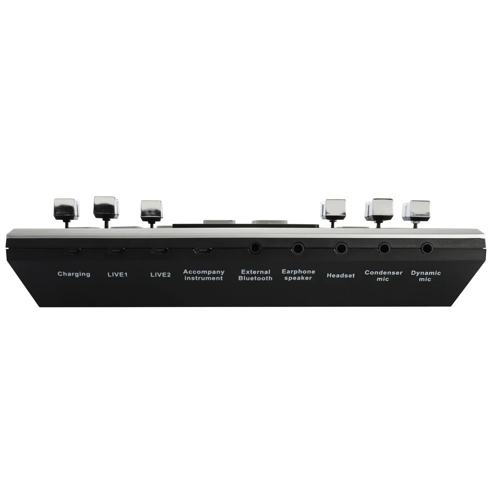 Audio Interface: Charging, LIVE1, LIVE2, Accompany instrument, External BT, Earphone speaker, Headset, Condenser mic, Dynamic mic