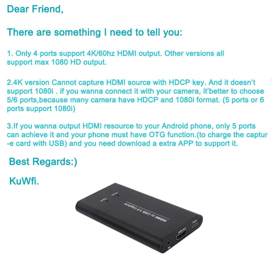 Check This Video Reviews KuWFi USB3 0 HDMI 4K60Hz Video Capture HDMI to USB Video Capture Card Dongle Game Streaming Live