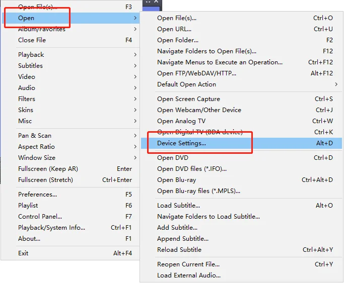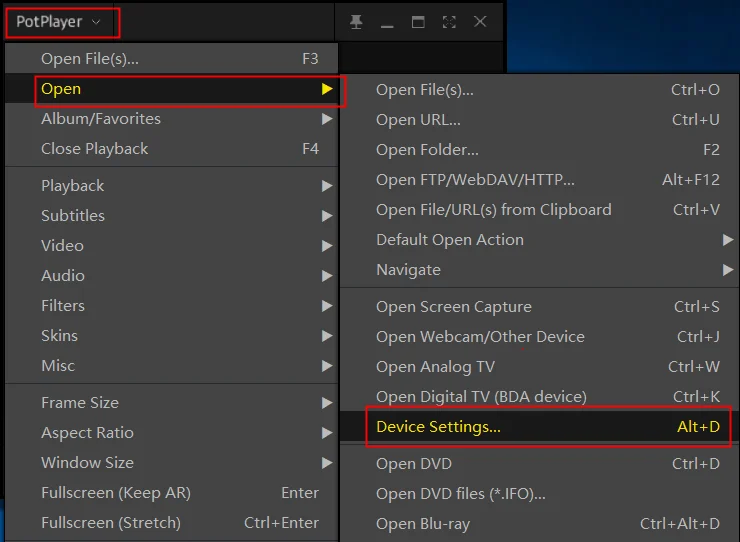 Take “Potplayer” as an example.1. Right click ‘Potplayer’→ open → select “Device settings”