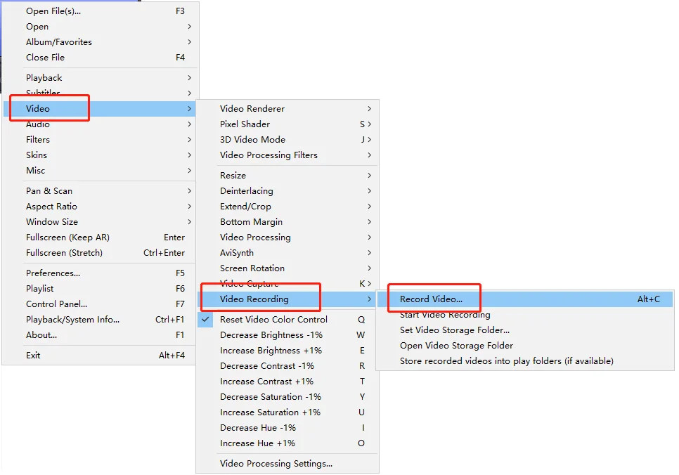 4. Record the videoRight click → Video → Video Recording → Record Video (Select file storage location and set video parameters, click “Start” to record the video)