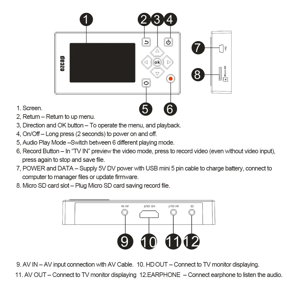 Audio Output: 3.5mm AV Cable, HD, 3.5mm Earphone