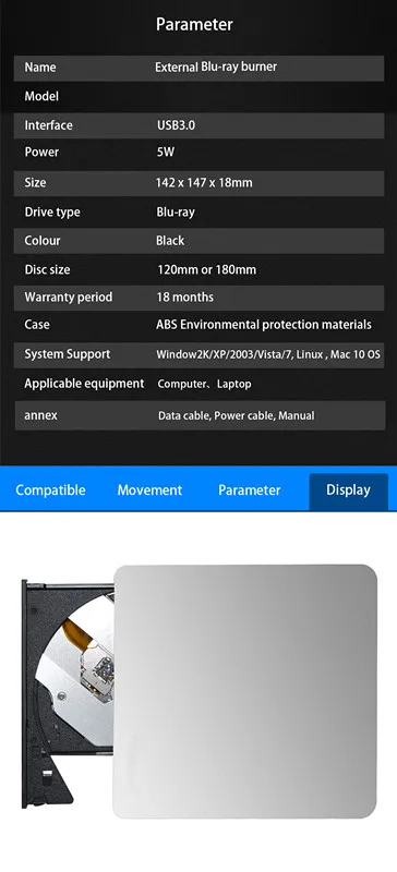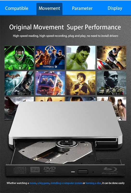 | For Mac 10 OS Window 7/8/XP/Linux External Blu-Ray Drive USB 3.0 Bluray Burner BD-RE CD/DVD RW Writer Play 3D Blu-ray Disc |