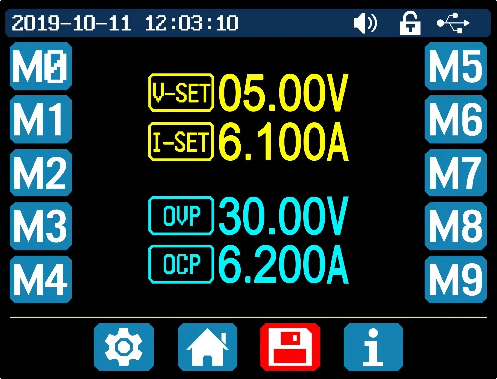 M0 is the default data group when RD6006 is powered on, manually modify the settings and automatically remember to M0 after confirmation.