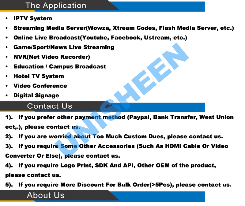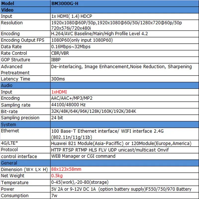 GSM/GPRS/EDGE: 1800MHz,900MHz Unisheen BM3000G-HDMI Live video streaming Encoder has never been easier. Go live online to any Web destination or turn your HDMI-equipped camera into a wireless video source. Whether you’re streaming your party,Club,church’s ceremony or sharing your campus sports game online, Unisheen BM3000HDMI helps you bring your unique experiences live to the Web for your people.