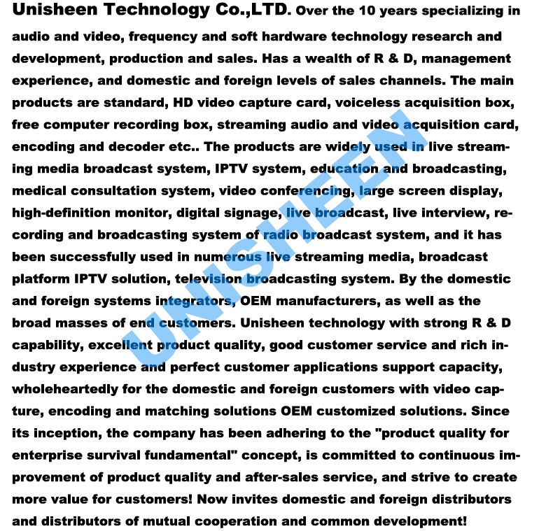 Unisheen BM3000B-WFHDMI ,it is compatible with most of streaming platforms, you can choose any of the popular streaming platforms to go live at anytime you like ,such as Ustream, Livestream, Facebook Live, and YouTube Live or even build your own using Wowza Streaming Server .Unisheen BM3000B-WF-HDMI can support multi-stream,up max to 4 stream at same time.you can push multi-platform in the meantime.Wireless Source for Live