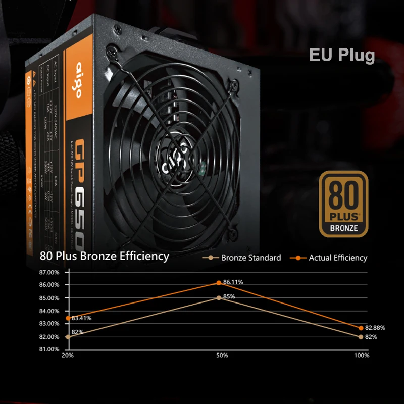 Best Price Comparison With Aigo GP650 Power Supply 650W 80PLUS BRONZE PC Power E-sports Max 850W Power Supplies For Computer 12V ATX 12CM Fan Power Supply