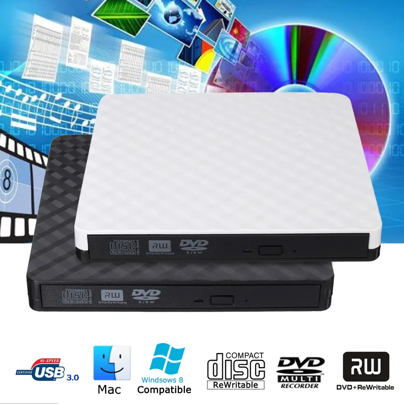 | USB 3.0 slim portable Optical Drives Cases External DVD RW CD Writer Drive Burner Reader Player for Mac Laptop PC |