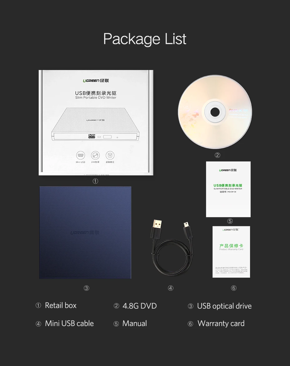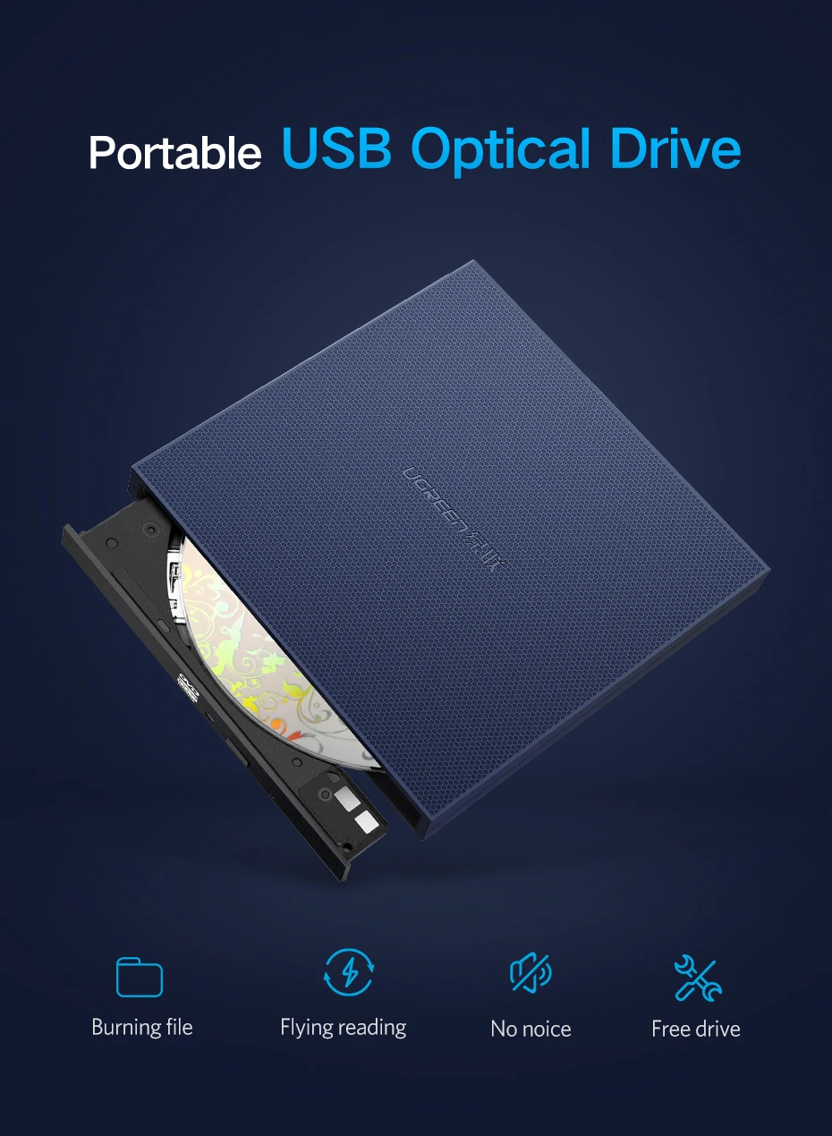 | Ugreen USB Optical Drive External USB 2.0 CD/DVD-ROM Combo DVD RW ROM Burner for Dell Lenovo Laptop Windows/Mac OS USB DVD Drive |