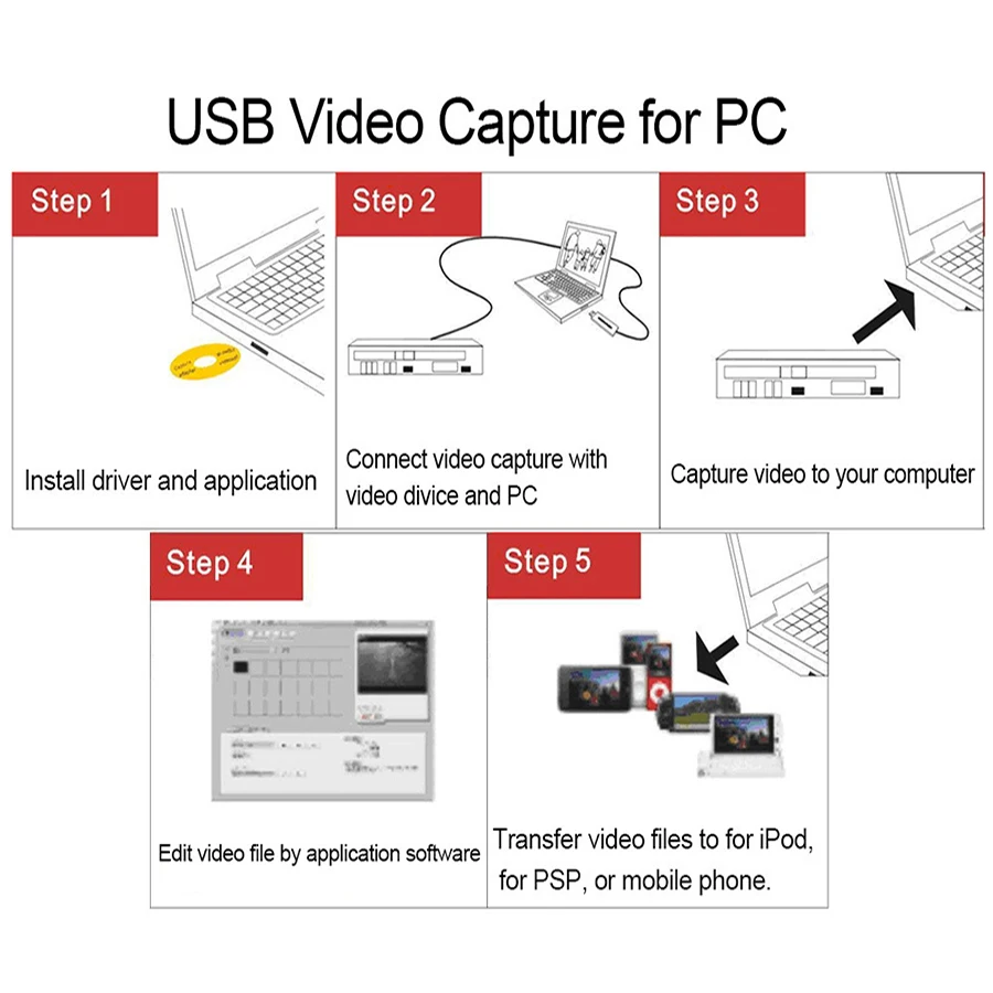 | EZCAP USB 2.0 HD Video Capture TV DVD VHS DVR Analog Video Recorder Grabber Adapter Audio to Digital Converte For Windows 10/8/7 |