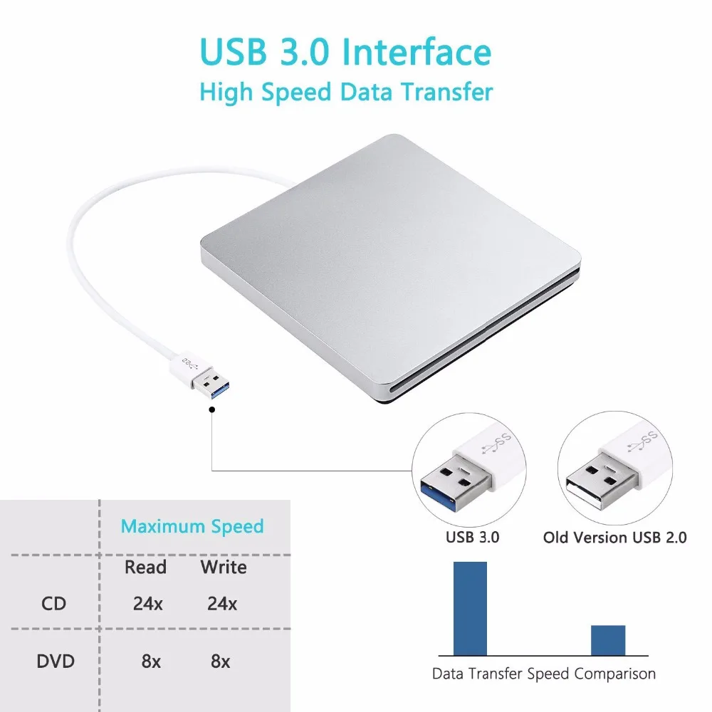 | USB 3.0 Slot Load Drive External DVD Player CD/DVD RW Burner Writer Recorder Superdrive for Apple Macbook iMAC Laptop PC/MiNi PC |