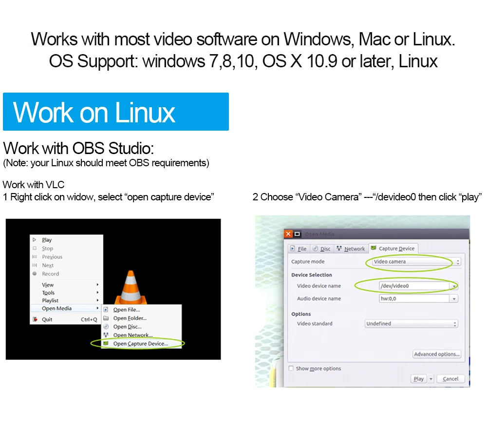 * Works with most video software on Windows,For Mac or Linux.