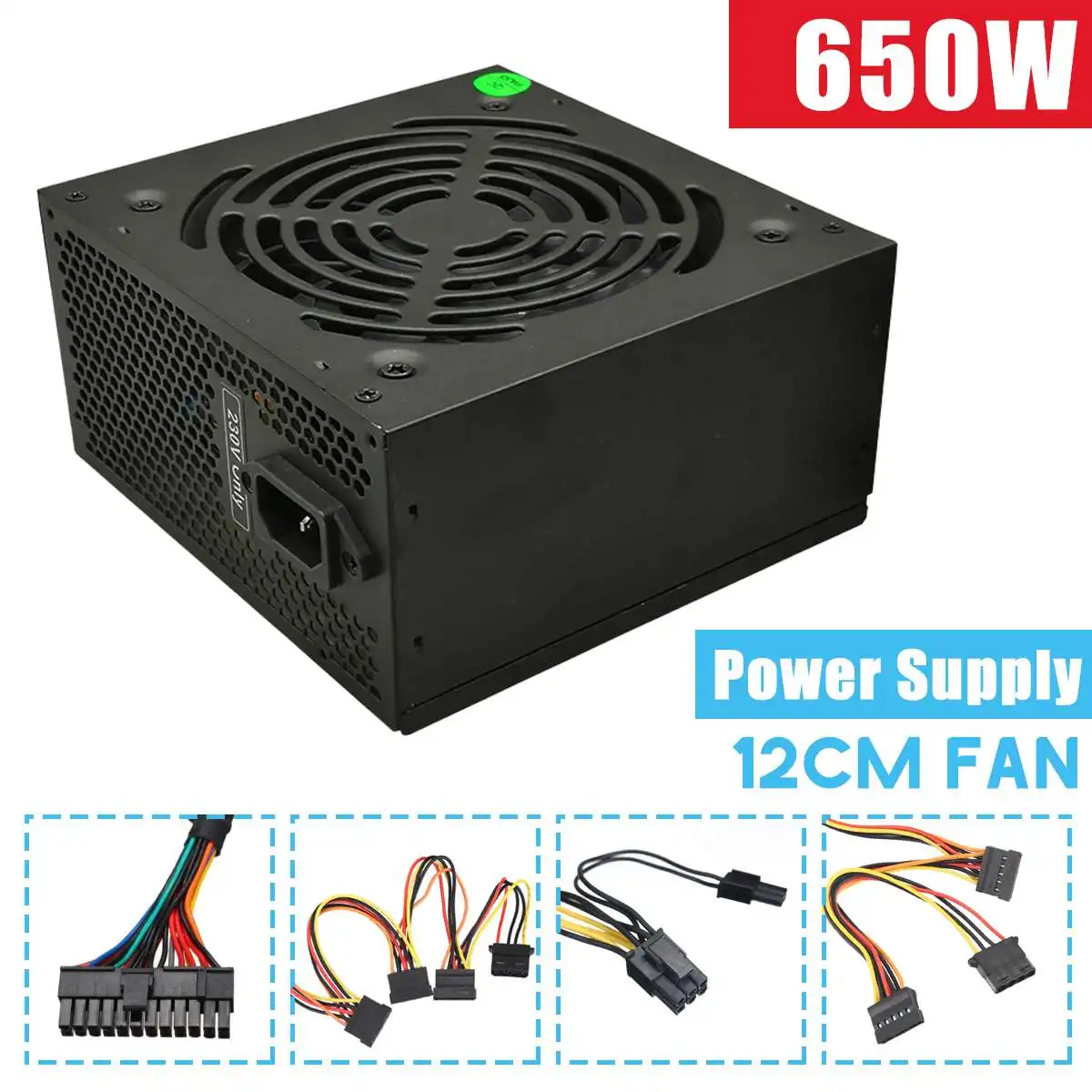 650W Power Supply 12cm Fan 8 Pin PCI SATA 12V Computer Power Supply
