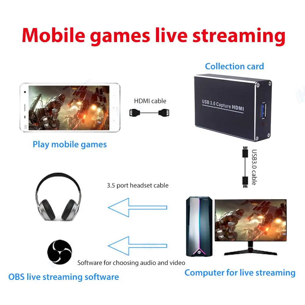 | USB3.0 HDMI 4K60Hz Video Capture HDMI To USB Video Capture Card Dongle Game Streaming Live Stream Broadcast With MICinput |