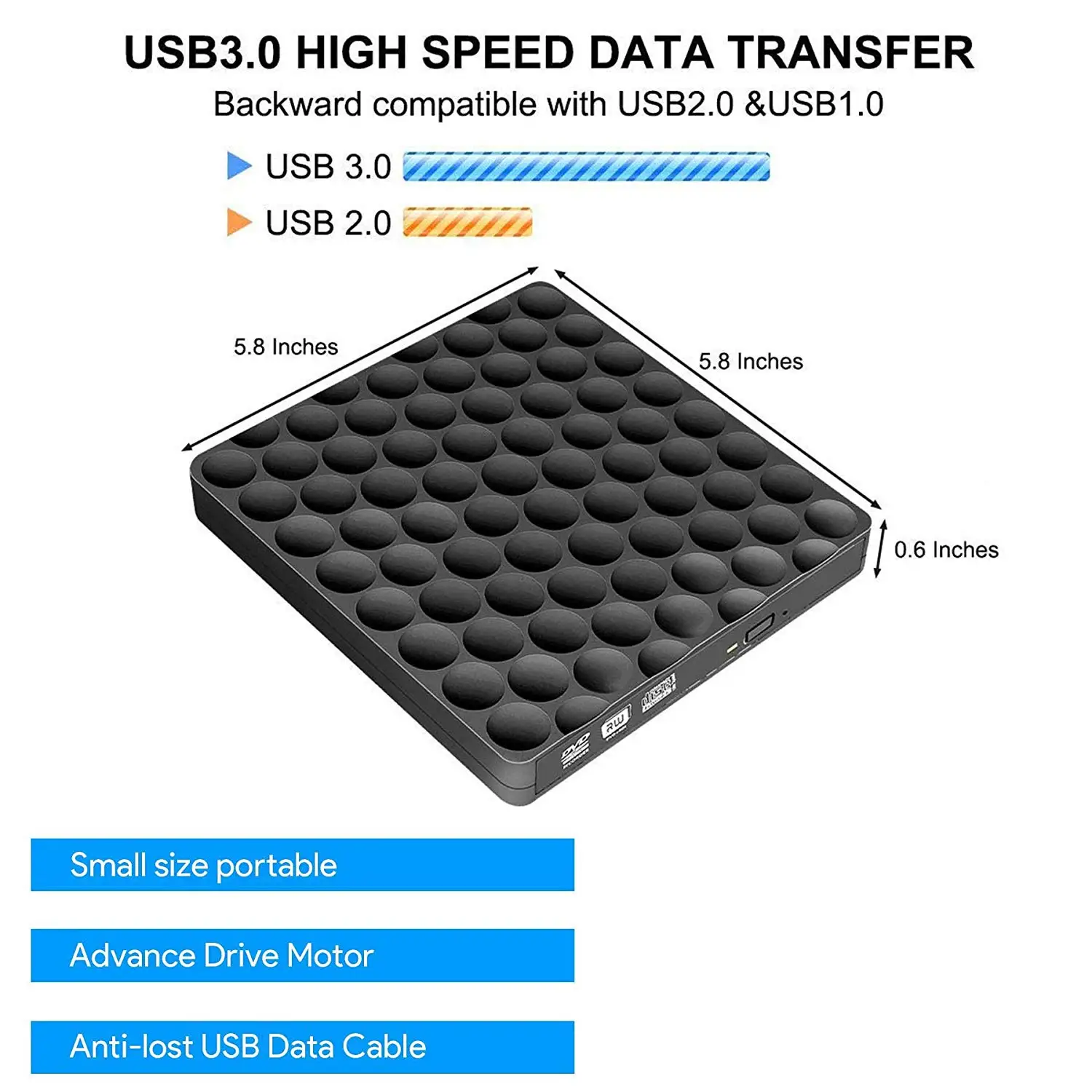 | KuWFi Ultra-slim USB 3.0 External CD DVD-RW Drive Rom Burner Writer 5Gbps Date Transfer 14.8x14.2x1.8cm for Laptop Desktops |