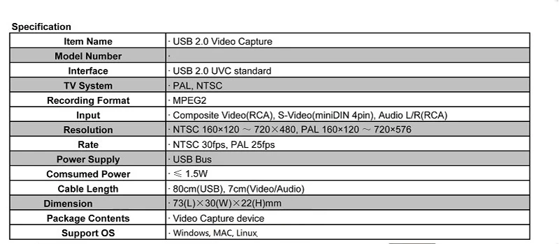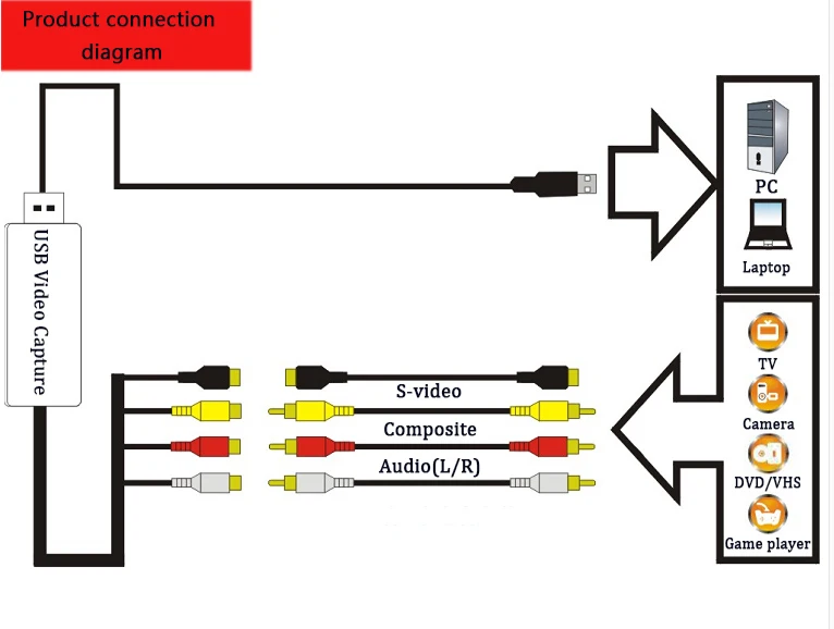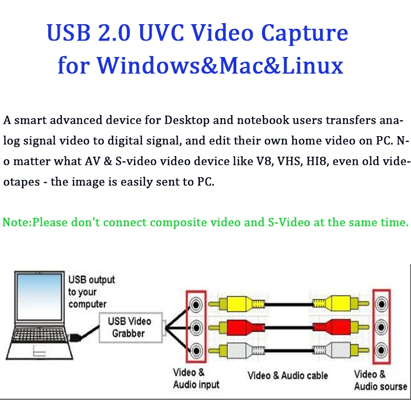 | USB 2.0 UVC Audio Video Capture Analog Video Recording for XBOX PS3 VHS Old Camera Support Windows Linux MAC Win10 |