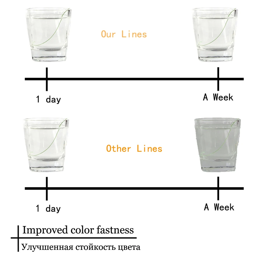 Basic Parameter:Line Number 2.0# : 35LB-0.24MM-15.9KGLine Number 2.5# : 40LB-0.26MM-18.1KGLine Number 3.0# : 45LB-0.28MM-20.4KGLine Number 3.5# : 50LB-0.30MM-22.7KGLine Number 4.0# : 60LB-0.32MM-27.2KGLine Number 5.0# : 80LB-0.36MM-36.3KGLine Number 6.0# : 90LB-0.40MM-40.8KGLine Number 7.0# : 110LB-0.45MM-49.9KGLine Number 8.0# : 120LB-0.50MM-54.4KGLine Number 10# : 135LB-0.55MM-61.2KGLine Number 12# : 150LB-0.60MM-68.0KGLine Number 20# : 180LB-0.70MM-81.6KG For Example: Line Number 6.0# : 90LB-0.40MM-40.8KG, means the strength is 90lb (40.8kg)and the diameter is 0.4mm.